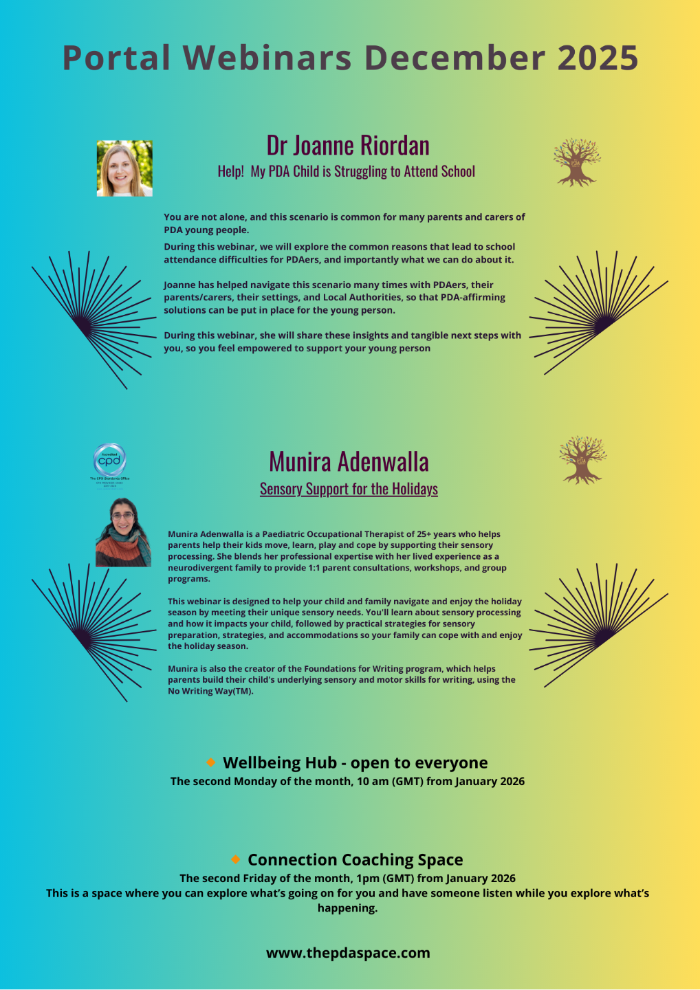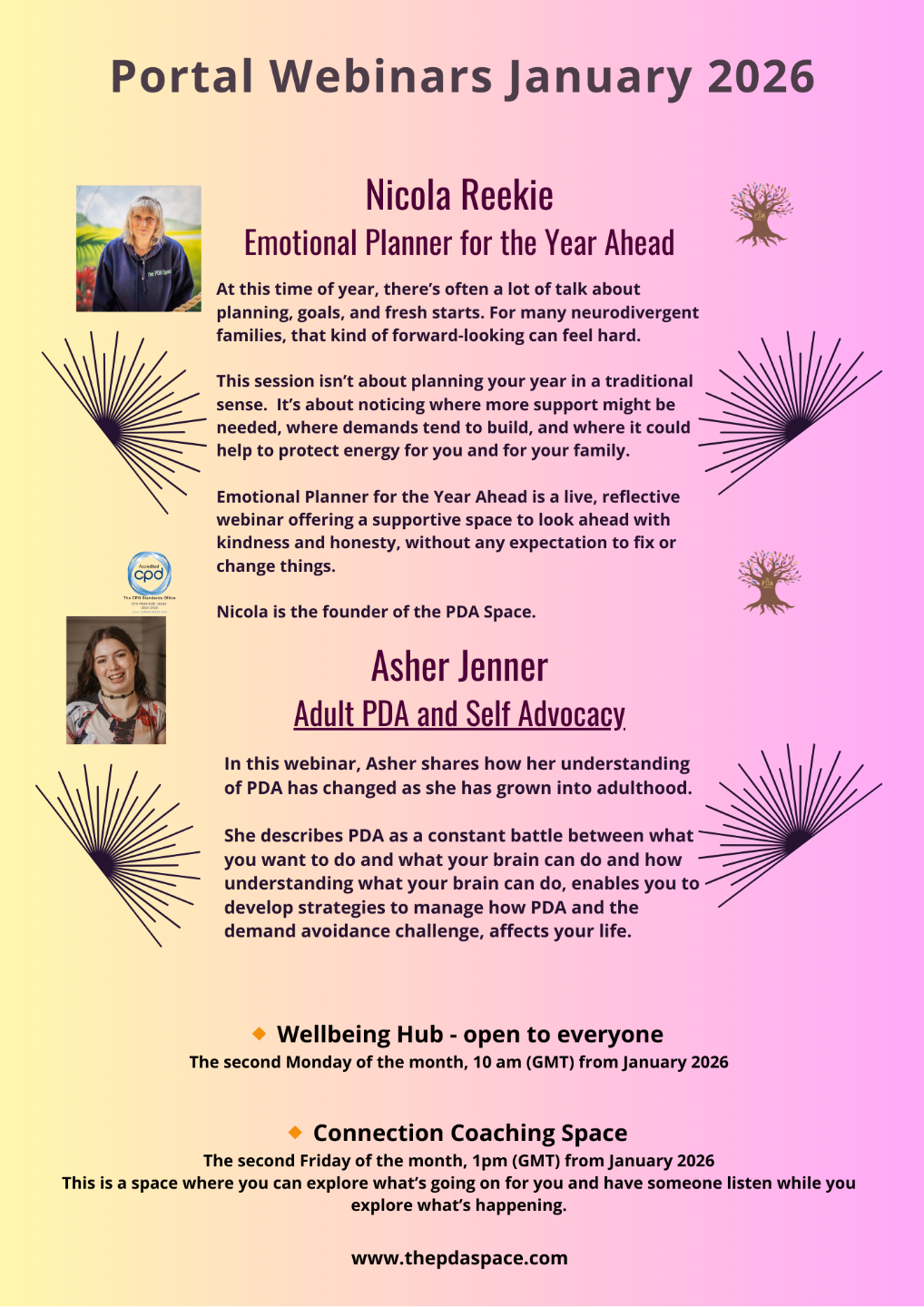 The PDA Space is constantly hosting training and webinars to support and educate in the neurodivergent space. As valued Portal Members, youâll receive: